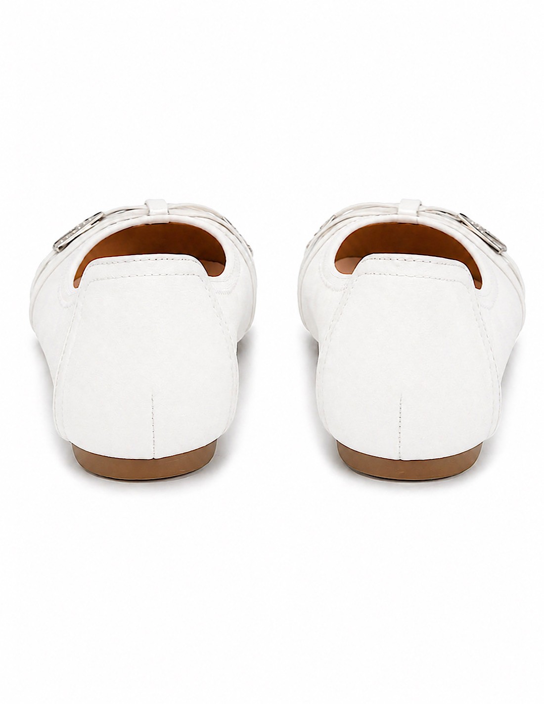Ballerines femme semelle cuir noir, blanc, marine, souples boucle argentée strass semelle