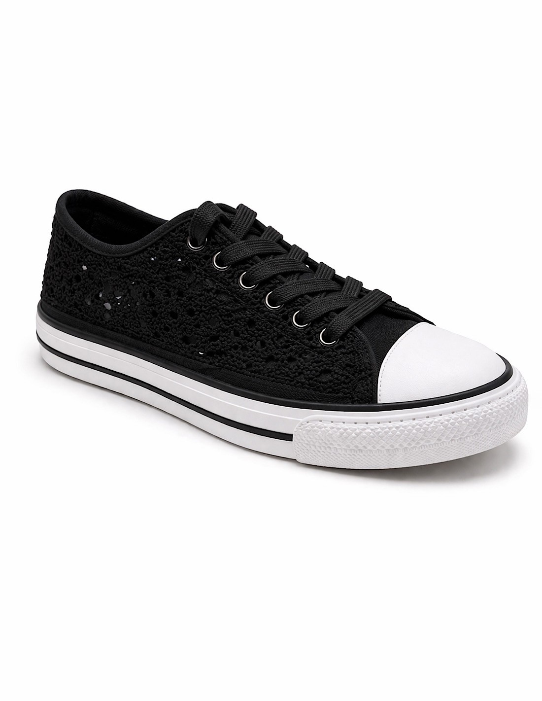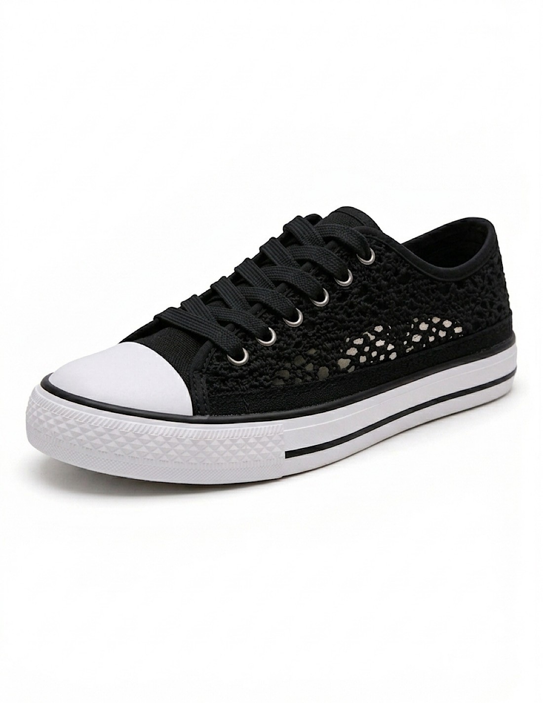 Basket femme dentelle blanche, noire ou bleu marine – Sneakers basses confortables et respirantes – Chaussures été