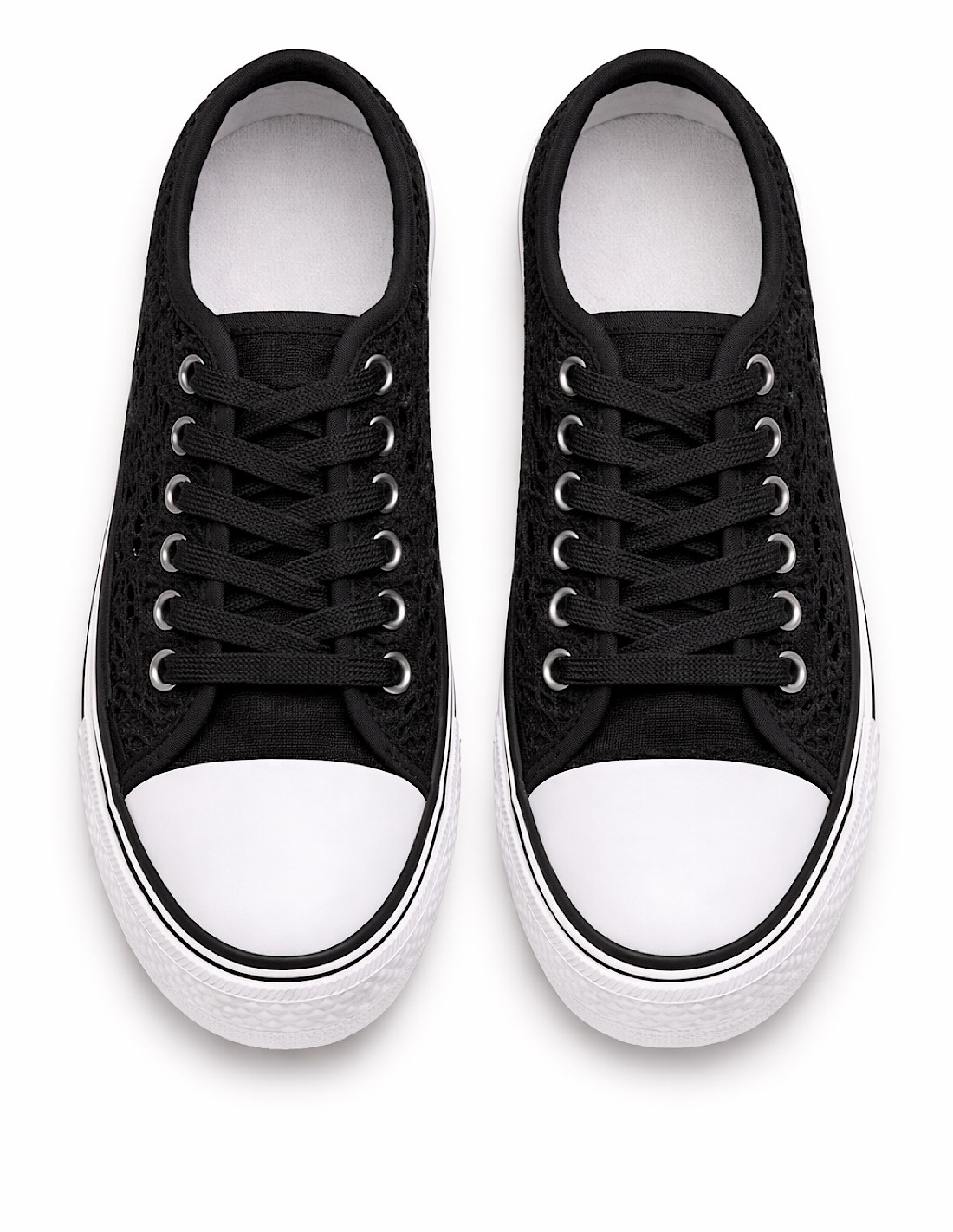 Baskets femme dentelle blanche, noire ou bleu marine – Sneakers basses confortables et respirantes – Chaussures été casual chic légères