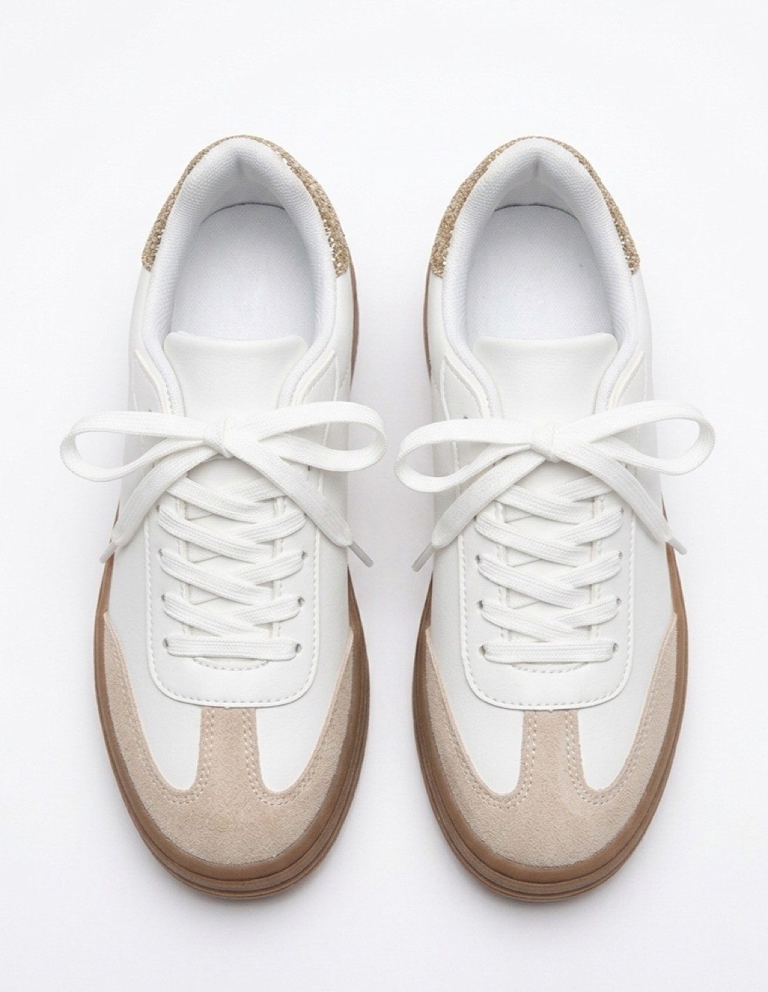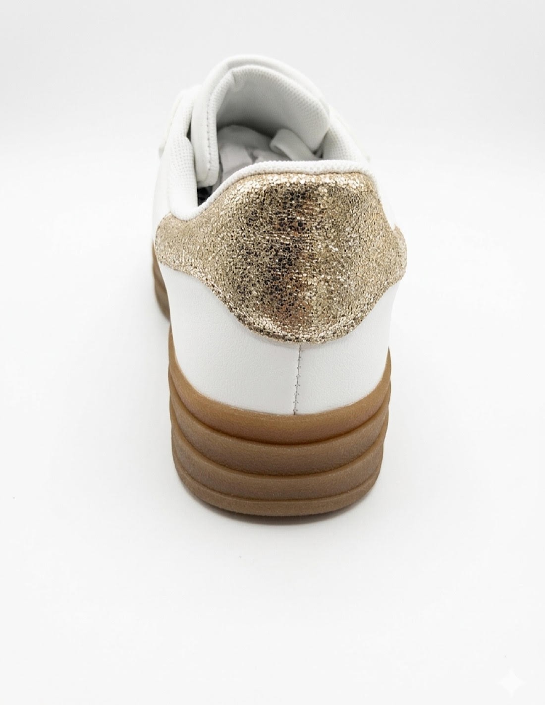 Baskets Blanches Femme Tendance – Semelle Gomme & Détail Doré Chic