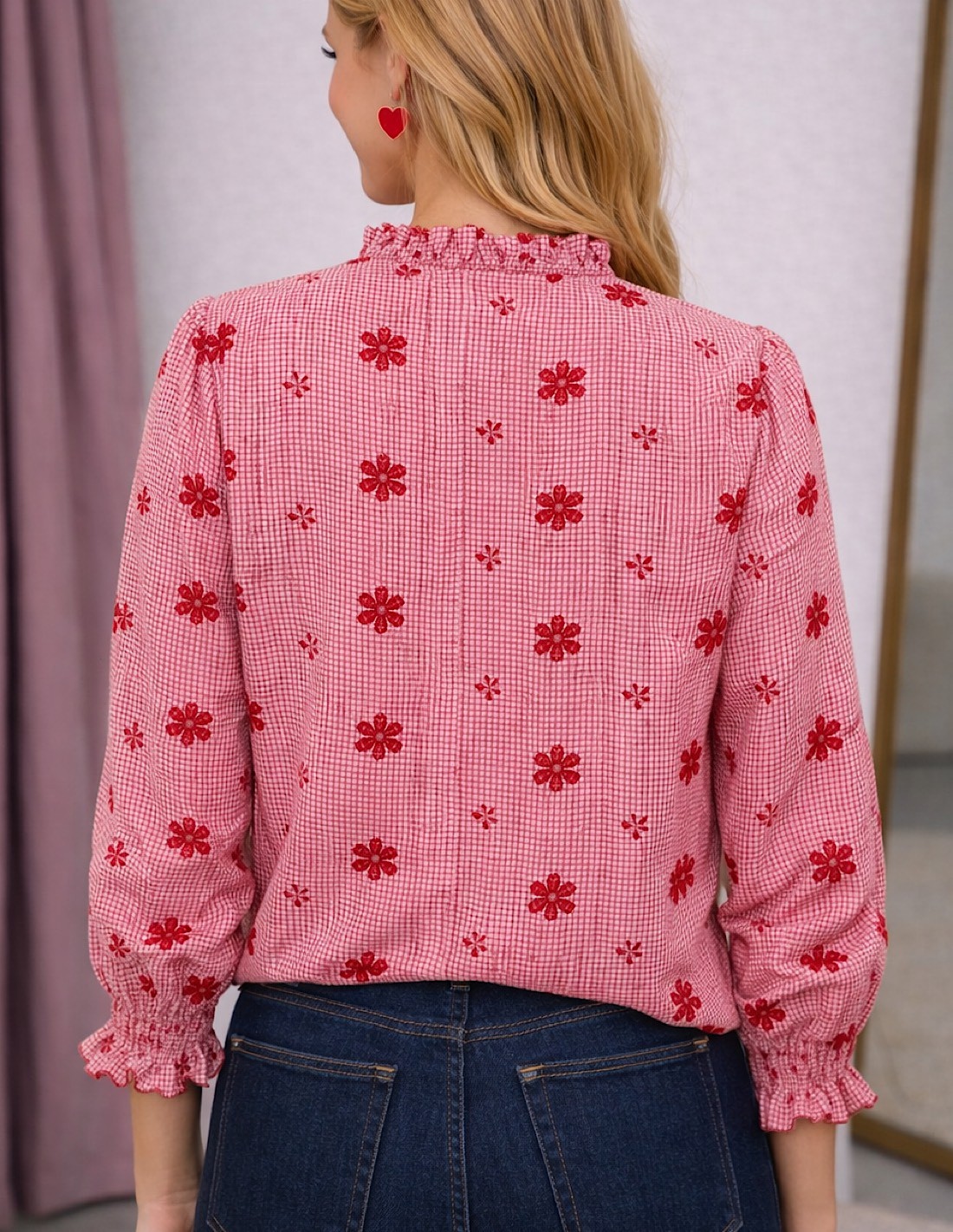 Craquez pour cette blouse vichy rouge ou bleu à fleurs brodées, une pièce féminine et tendance qui apporte une touche de douceur et de féminité à votre dressing.