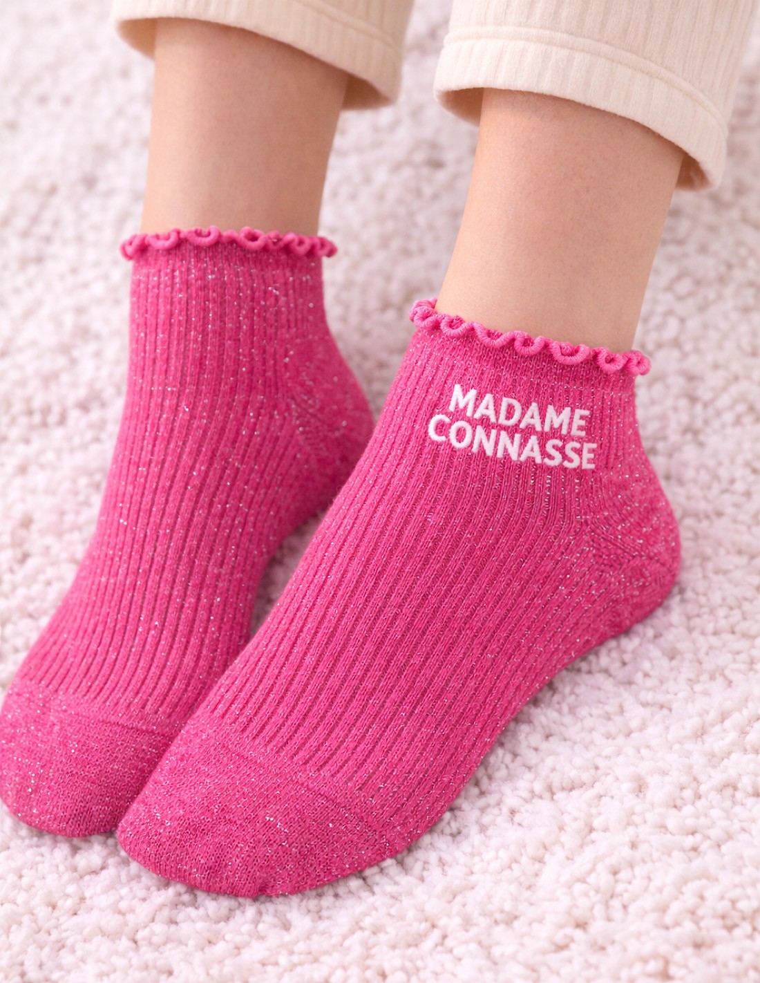 Apportez une touche de brillance et de caractère à vos tenues avec nos chaussettes pailletées aux messages humoristiques :