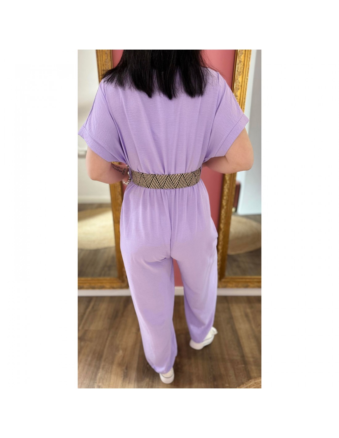 Combinaison pantalon légère vendue avec une jolie ceinture tressée que vous pouvez remplacer par vos ceintures préférées :)