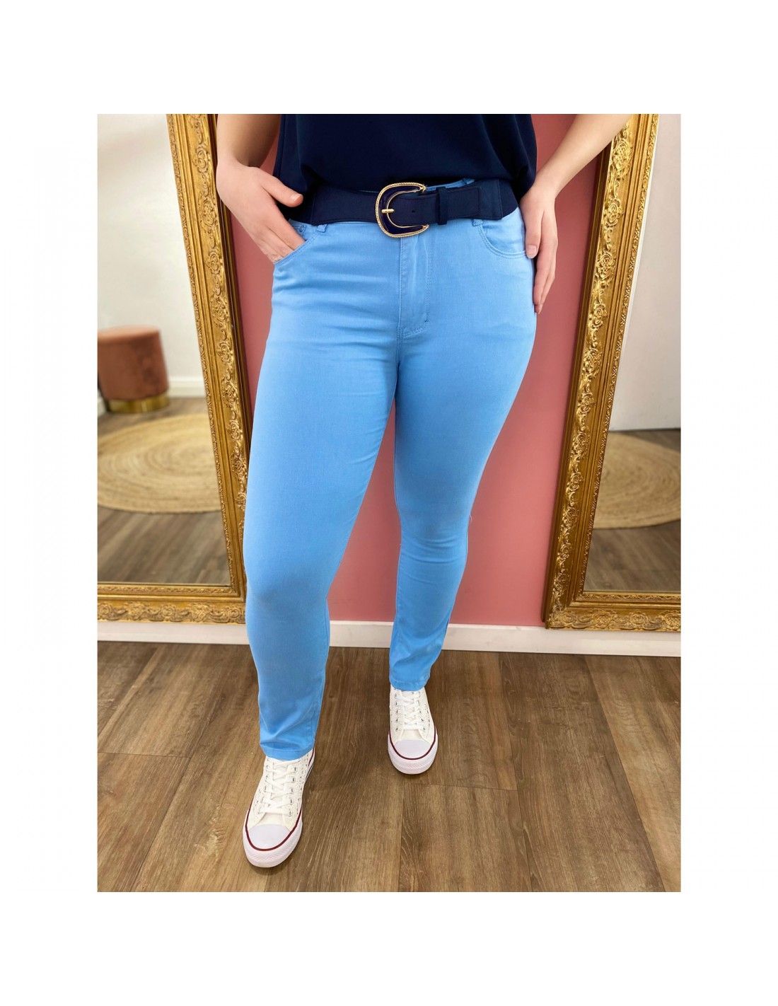 Nos jean slims colorés à taille haute sont bien coupés et taillent normalement. Vous pouvez prendre votre taille habituelle. Très stretch, ils sont tout confort et se détendent toujours un peu pour plus de souplesse.