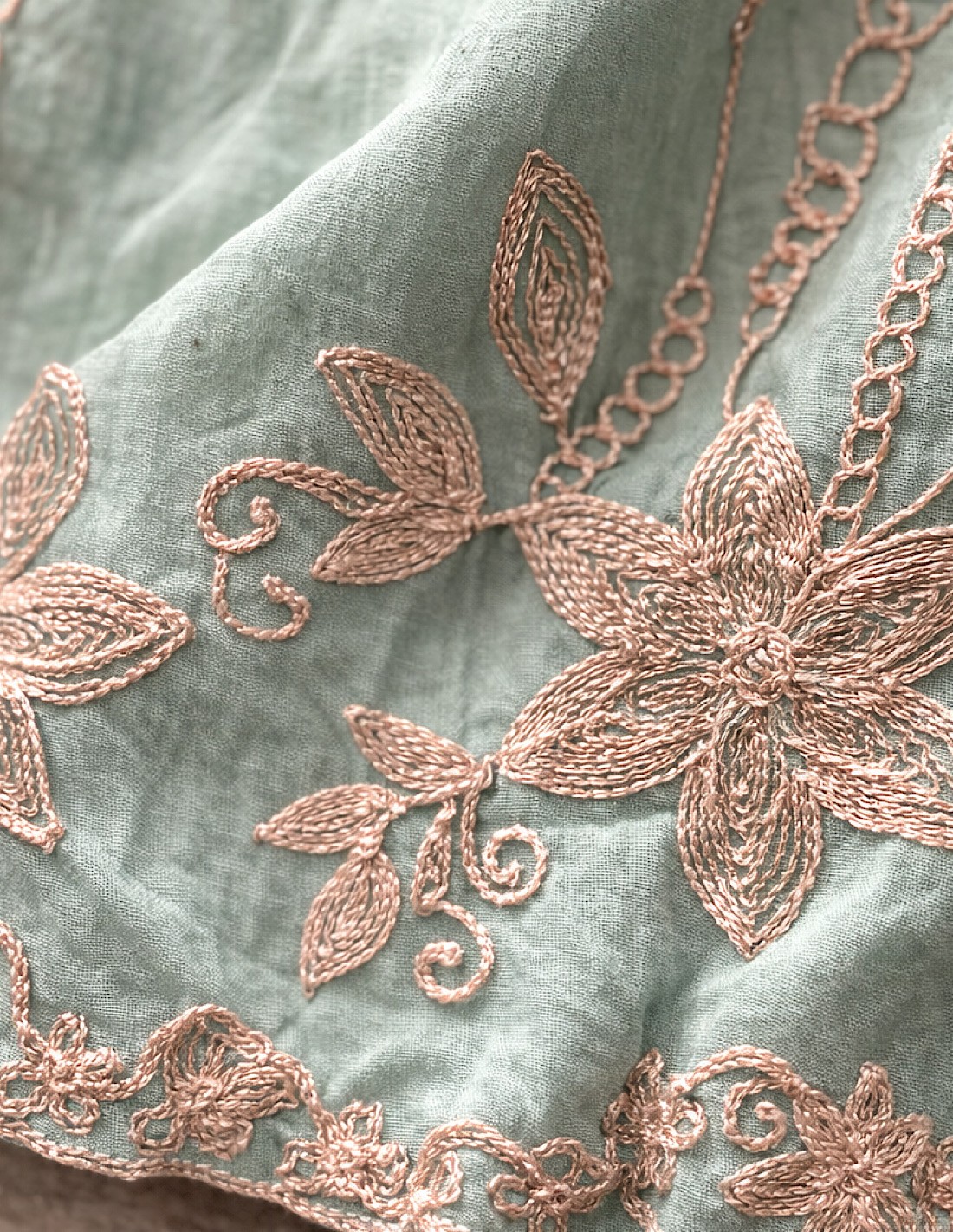 Robe grande taille vert d’eau brodée du 42 au 50 – Élégance bohème et confort absolu