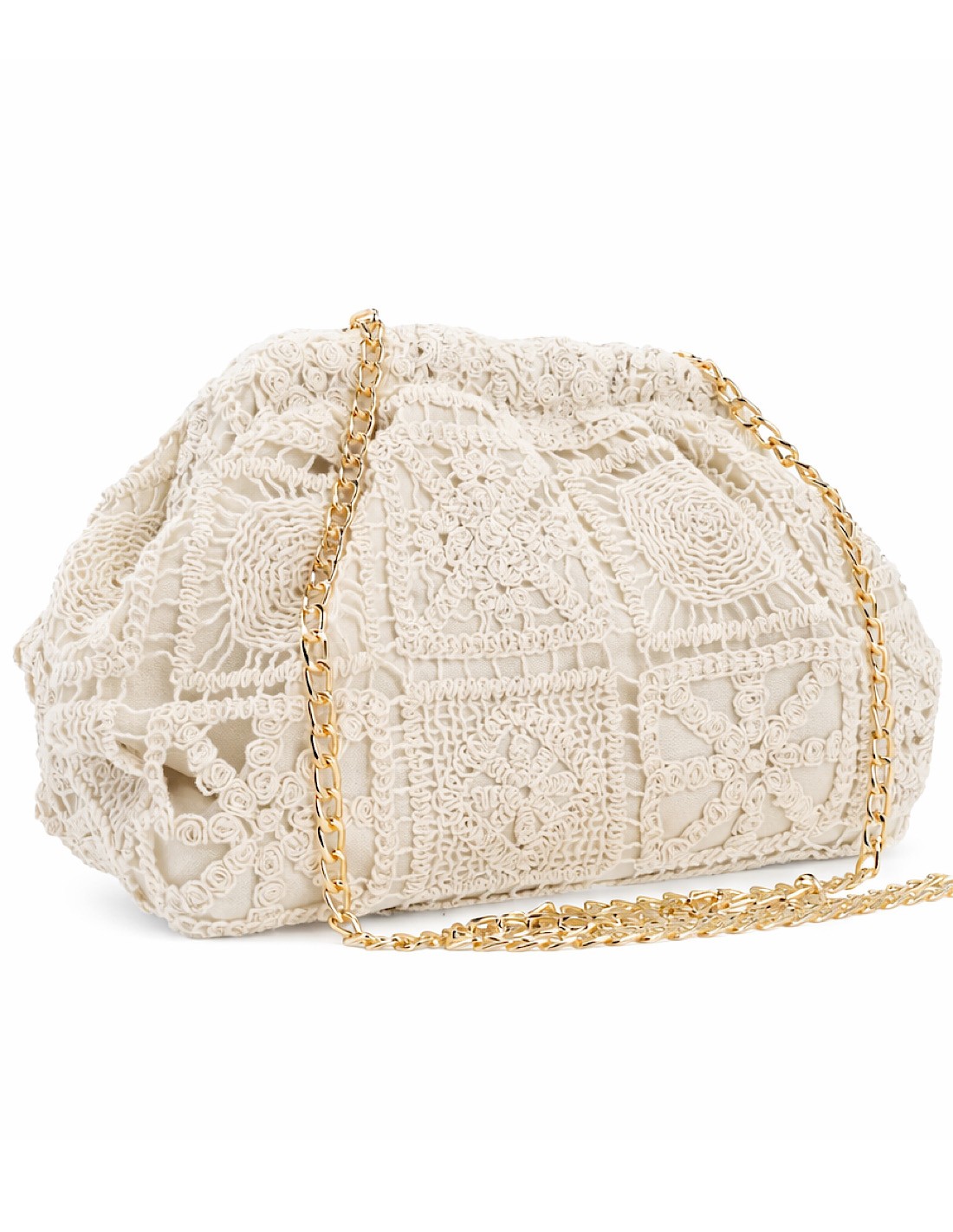 Sac pochette bohème chic en dentelle crochet avec chaîne dorée