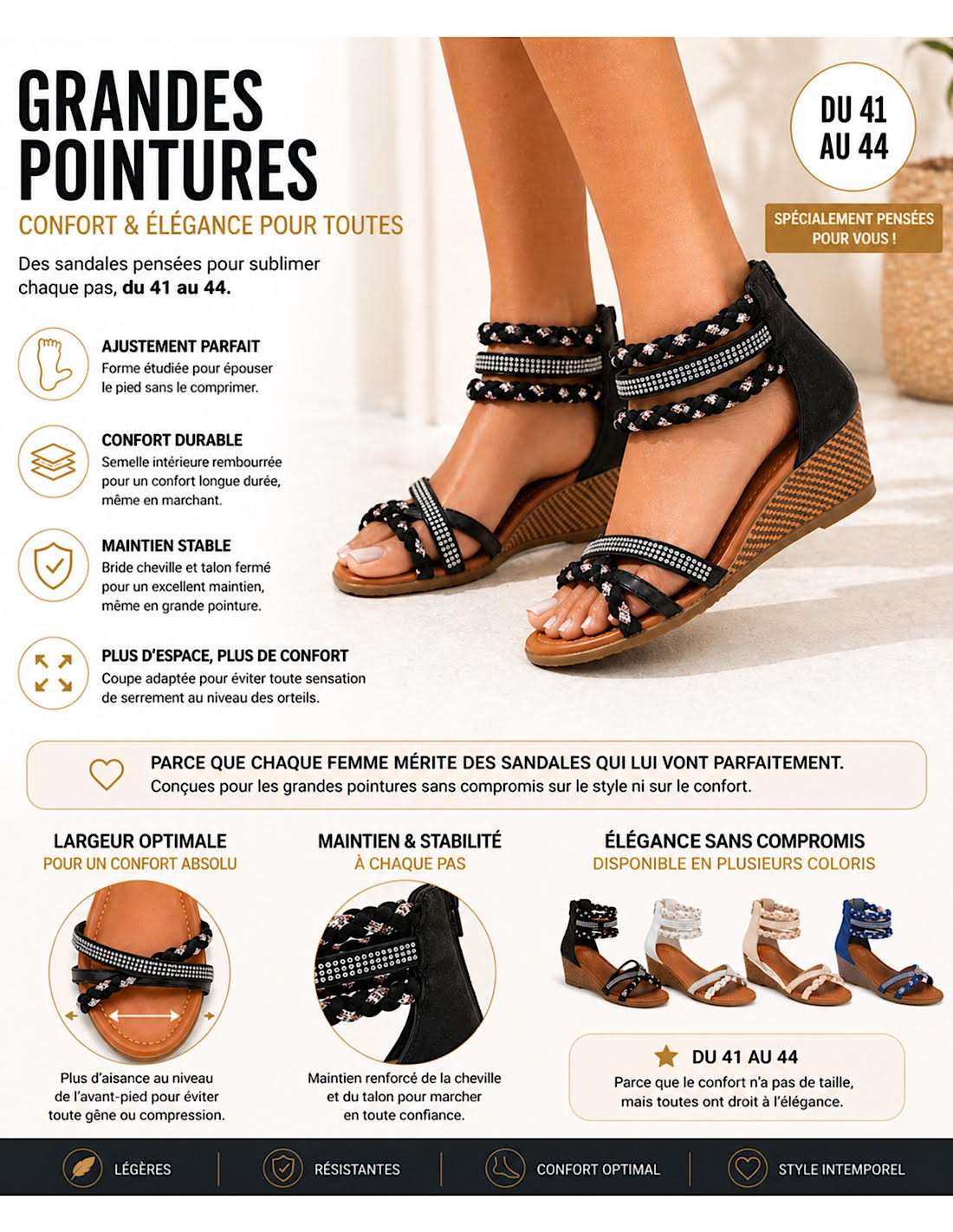 sandales compensées femme noir et confortables avec strass grande pointure femme 41,42,43,44