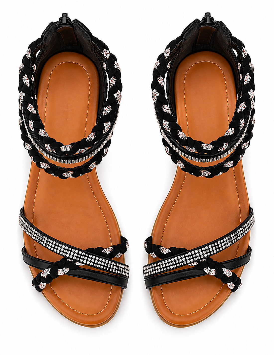 Sandales femme petit talon compensé bride cheville tressée & strass
