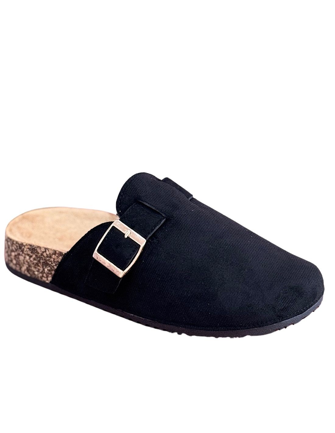 Sabots mules femme confort en suédine avec boucle - Semelle anatomique en liège