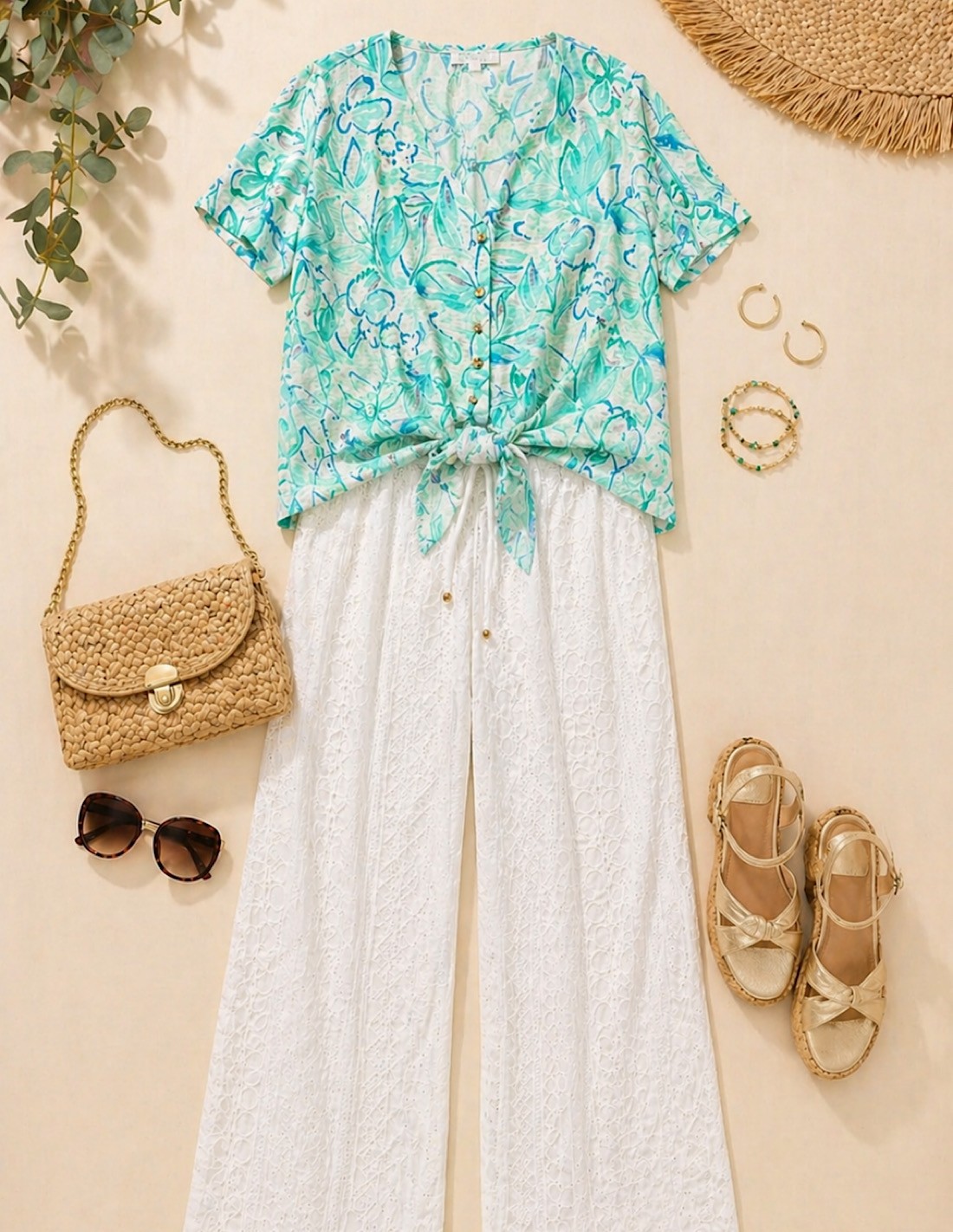 Elle se porte facilement avec un pantalon blanc, un jean, une jupe fluide, un short ou un pantalon large pour un look tendance et féminin.