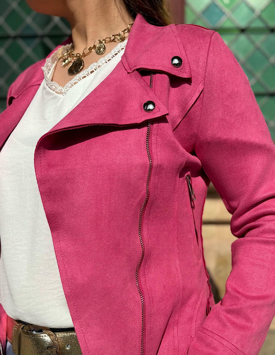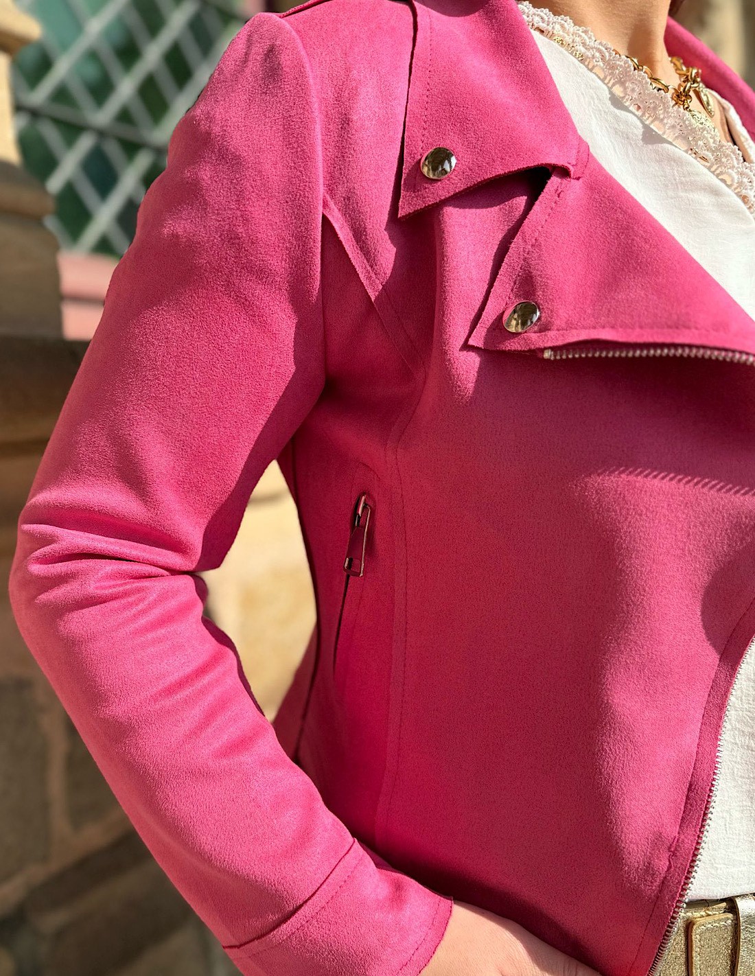 Veste perfecto courte en daim pour femme - Divers coloris flashy, pastels et tendance pour le printemps - Style chic et tendance du S au XXL