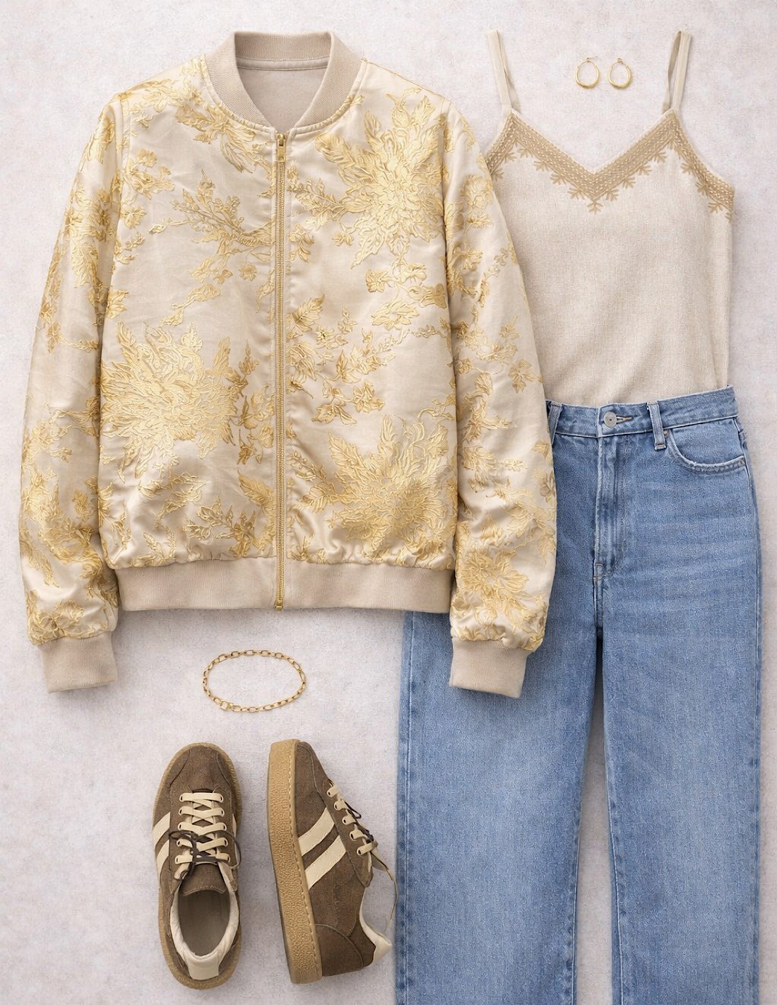 Craquez pour ce bomber femme en satin brodé floral, une pièce incontournable pour un look à la fois chic, tendance et raffiné. Cette veste courte zippée séduit par son tissu satiné lumineux, ses broderies fleuries délicates et sa coupe moderne qui sublime toutes les silhouettes. Disponible en rose poudré et en doré, ce blouson bomber femme est idéal pour apporter une touche de luxe discret à vos tenues du quotidien ou de soirée.
